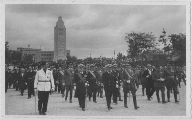 El 16 de mayo de 1947 el caudillo fascista Francisco Franco, expresamente desplazado a Palma para presidir la inauguración del monumento ubicado en Sa Feixina, a los acordes del Himno Nacional, vistiendo uniforme de Capitán General de la Armada, acompañado de la inevitable Carmen Polo y todas las autoridades habidas fue recibido, en un altar situado en el monumental escenario, por el obispo de Mallorca monseñor Hervás y con la asistencia de un numeroso público se dispusieron a inaugurar el monumento diseñado por los arquitectos Francisco y José Roca Simó, quienes le proporcionaron la impronta política e ideológica que le caracteriza. Así culminaba la propuesta iniciada por el periódico La Ultima Hora, entonces propiedad de José Tous Ferrer, el 14 de marzo de 1938, quien desde sus páginas y a través de un artículo titulado Gloria a la armada nacional, lanzó la iniciativa de construir el hoy polémico monumento. (Pep Vílchez)